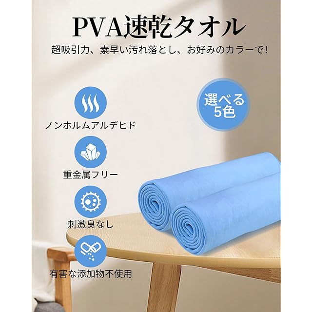 PVA素材で水滴などを残さずしっかりと拭き取れます。 切ってもほつれないのでお好きな大きさに切ってご使用いただけます。