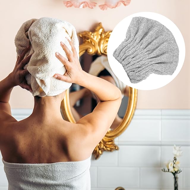 VOCOSTE タオルキャップ ヘアドライタオル 超吸水 速乾 髪の毛タオル 洗顔 プール お風呂 入浴後の髪の乾燥用 ふわふわ 炭繊維 1枚入り ライトグレー