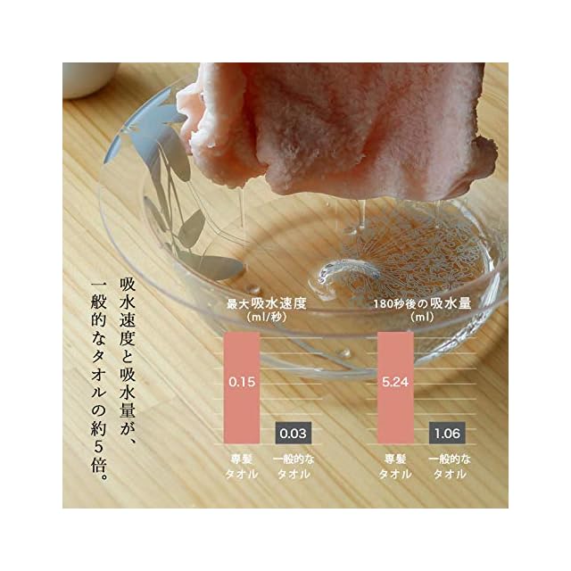 一般的なタオルと比べて吸水速度と吸水量が約5倍!