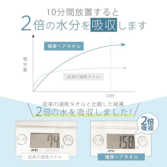 ながら時間10分かけて約2倍の水分を吸収できる特殊なタオル生地です。