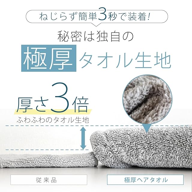 3秒で装着できる極厚ヘアタオルとスタートガイドのセットです。