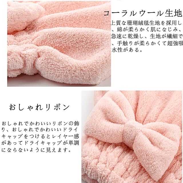 Mirhua大人 ヘアターバン 吸水速乾 ヘアタオル 髪 蝶結び 髪タオル かわいい 厚手 ヘアドライキャップ キャップレディース (ピンク)
