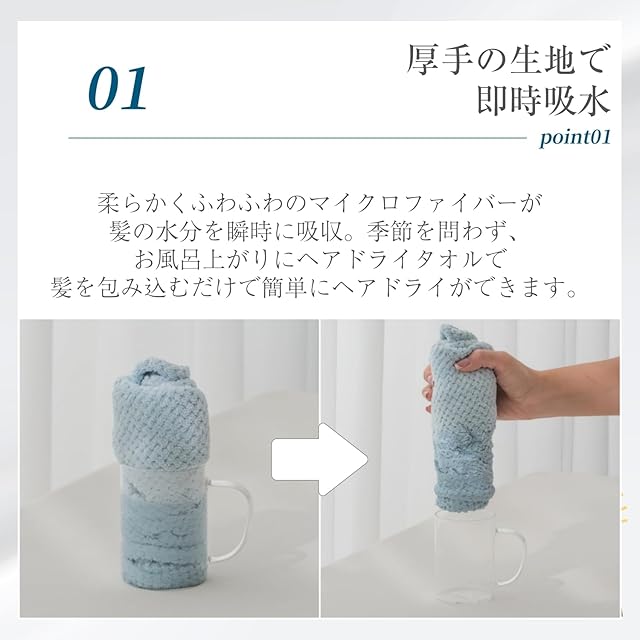 商品名:ヘアドライタオル ドライキャップ 2枚セット ヘアタオル ドライタオル シャワーキャップ 髪の毛 ヘアドライタオル 速乾 長い髪専用 極厚 軽量 強い吸水性 お風呂上がり ふわもこ 超吸水 ふわふわ 肌触り 超柔らかい ヘアターバン 大人 子供用 旅行 出張 温泉 プール ジム 海水浴