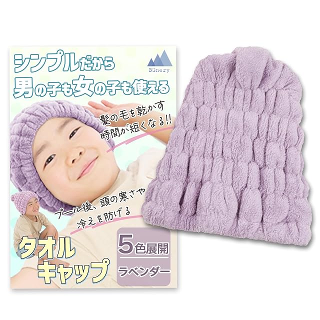 商品名:タオルキャップ 男の子 ふわふわ 風呂 大人 女の子 キッズ 子供 スイミング プール タオルキャップ ヘアドライタオル (ラベンダー)