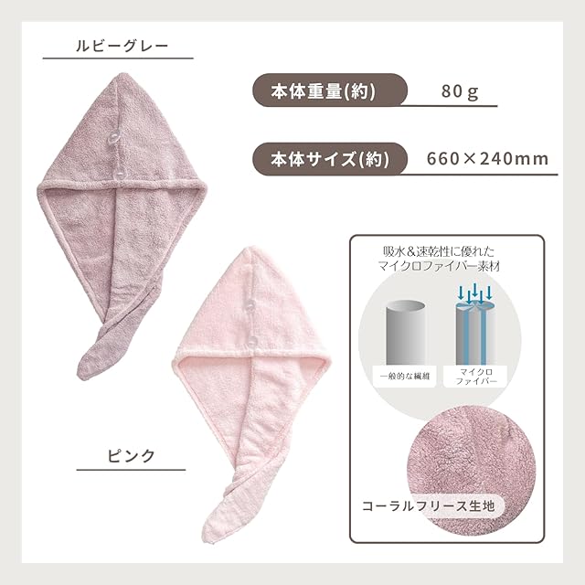 ヘアターバン ヘアドライタオル 髪の毛用 吸水速乾 タオル 速乾性 ヘアタオル 髪 早く乾かす グッズ ピンク