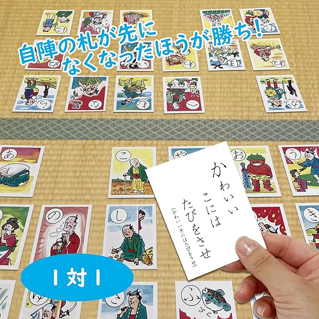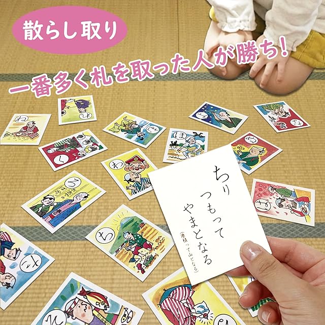 【誰でも遊べるよう読み札はひらがな】どの年代の方でも気軽に遊べるよう読み札は全てひらがなになっているので、「漢字が読めない」や「読み間違い」なく遊ぶことができます。また札は長持ちしやすいよう適度な厚みがあります。