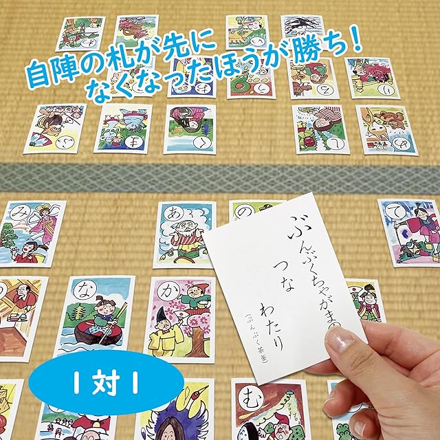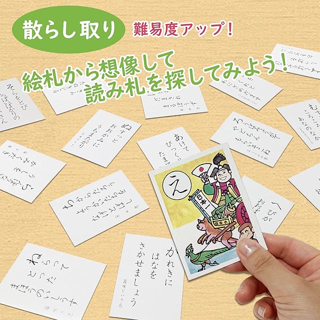 【誰でも遊べるよう読み札はひらがな】どの年代の方でも気軽に遊べるよう読み札は全てひらがなになっているので、「漢字が読めない」や「読み間違い」なく遊ぶことができます。また札は長持ちしやすいよう適度な厚みがあります。