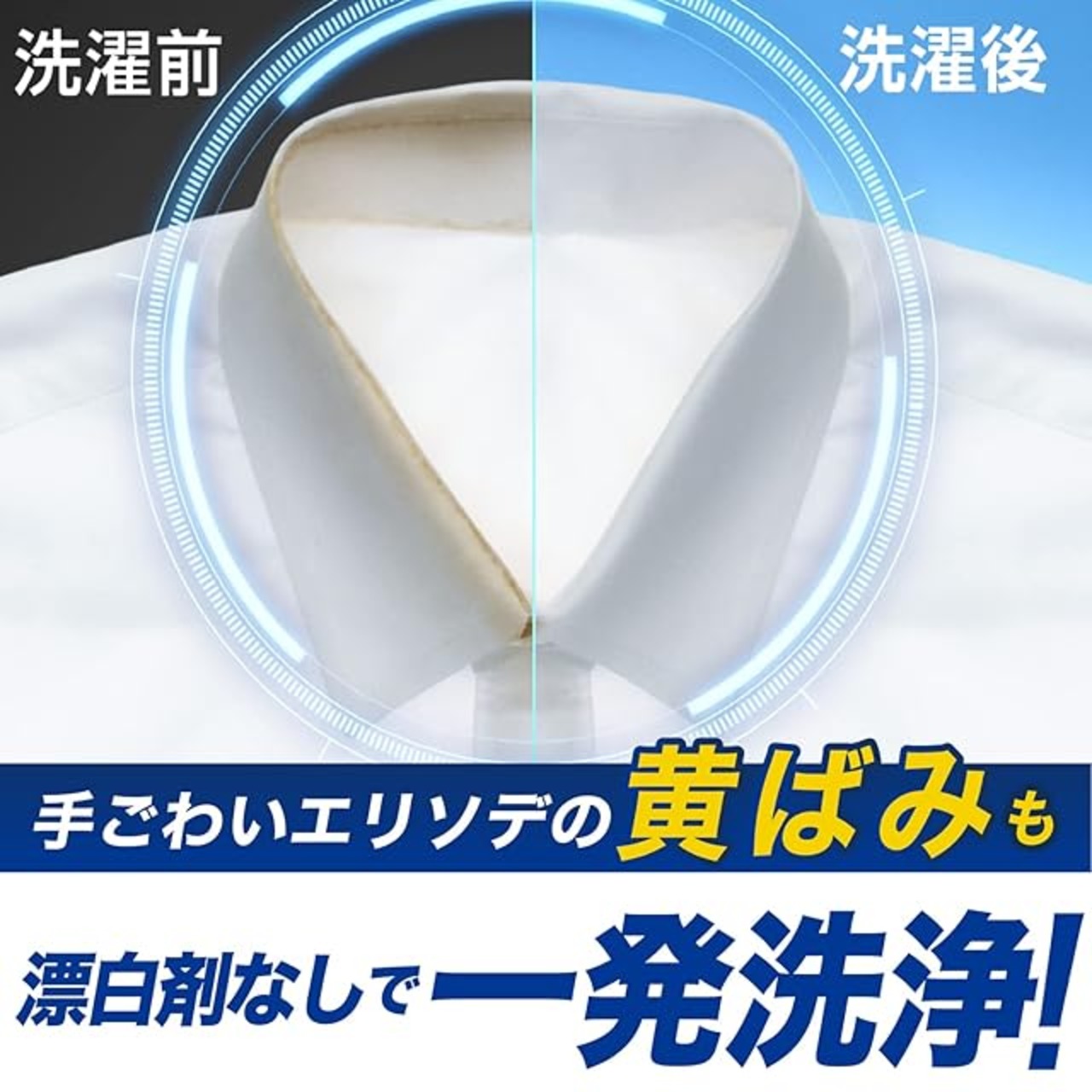 原材料: 界面活性剤(26%:ポリオキシエチレンアルキルエーテル、直鎖アルキルベンゼンスルホン酸塩)、安定化剤、分散剤、蛍光増白剤、酵素