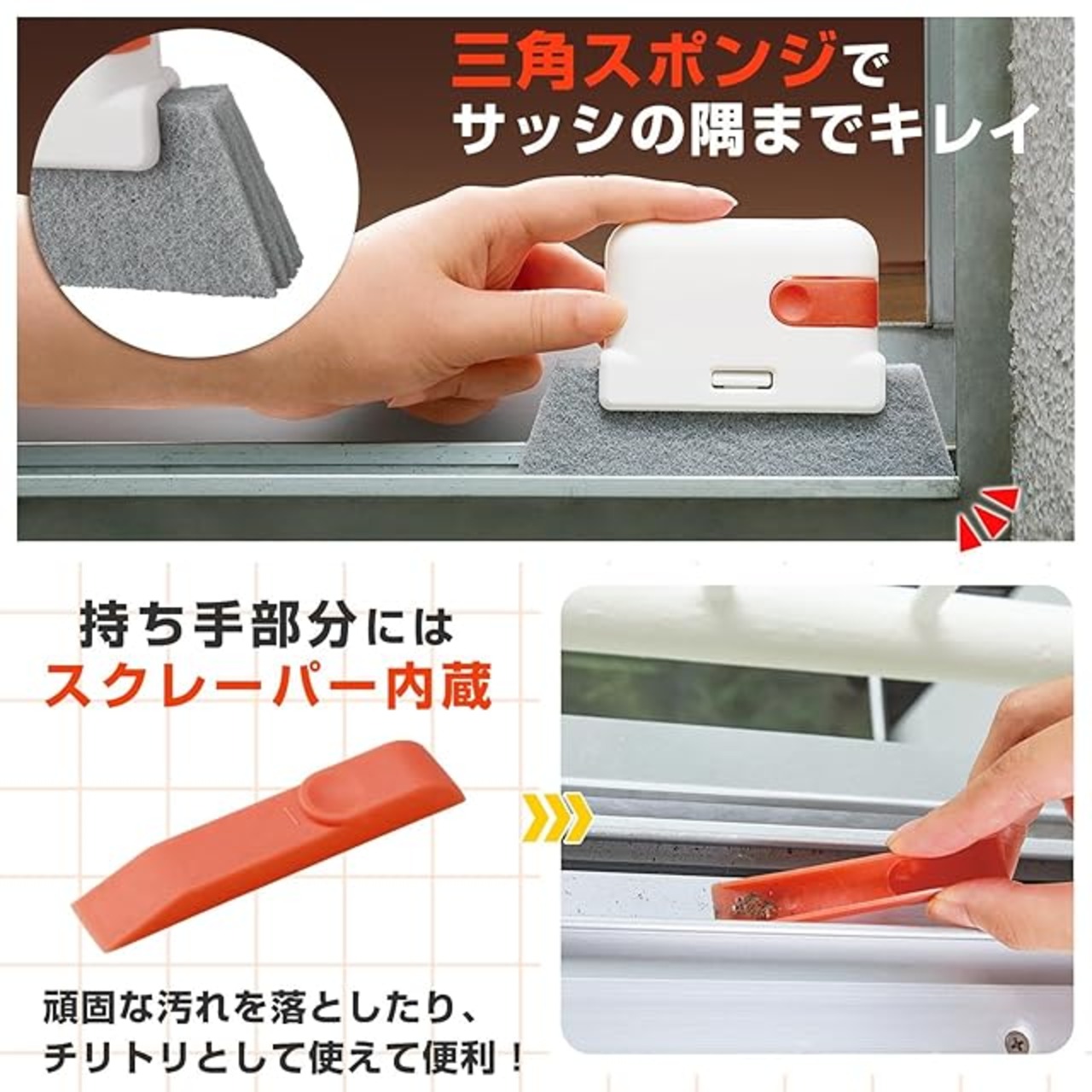 商品名:コモライフ サッシのお掃除スポンジ サッシ 掃除 スポンジ スクレーパー付 不織布 洗える 窓