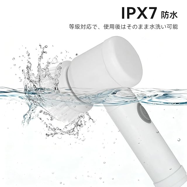 【防水&軽量設計で浴室掃除に最適】 防水のボディだから、お風呂掃除ブラシとして水しぶきもまったく問題なし!軽量化された本体は握りやすく、天井やタイルの目地など手の届きにくい場所も楽々お掃除。風呂掃除 ブラシとして浴槽の頑固な汚れも、お風呂掃除専用ヘッドでらくらく落とせます。