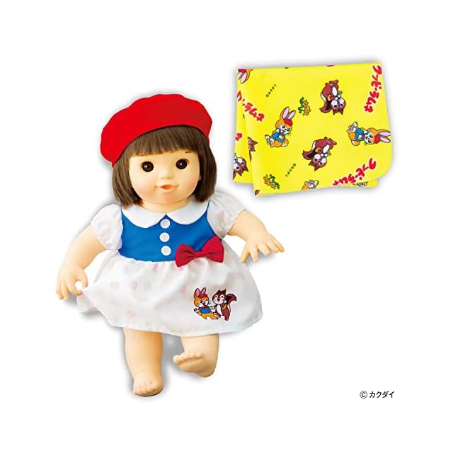 セット内容:ふわふわボディのぽぽちゃん、ウサギさんのベレー帽、ワンピース、おせわブランケット