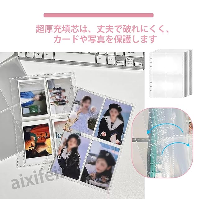 【多用途収納】:トレカはもちろん缶バッジ・ステッカー・ポストカードまでまとめてスッキリ。推し活メモやDIY手帳としても大活躍。