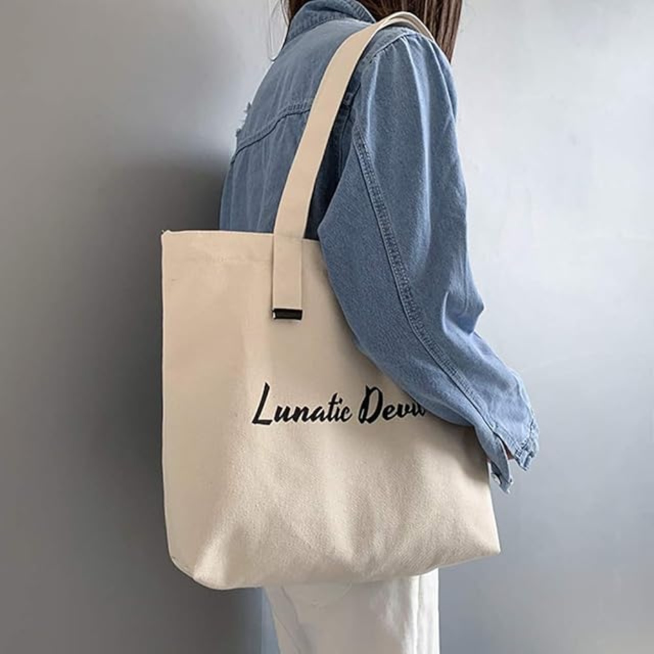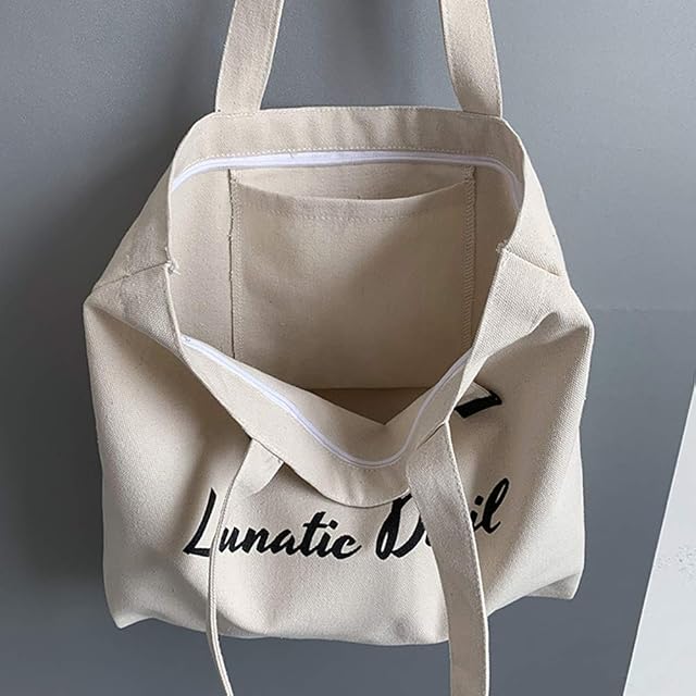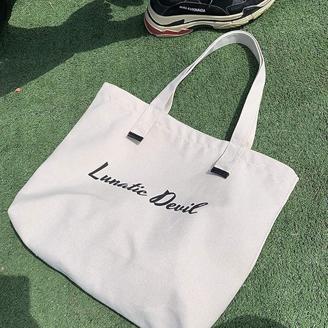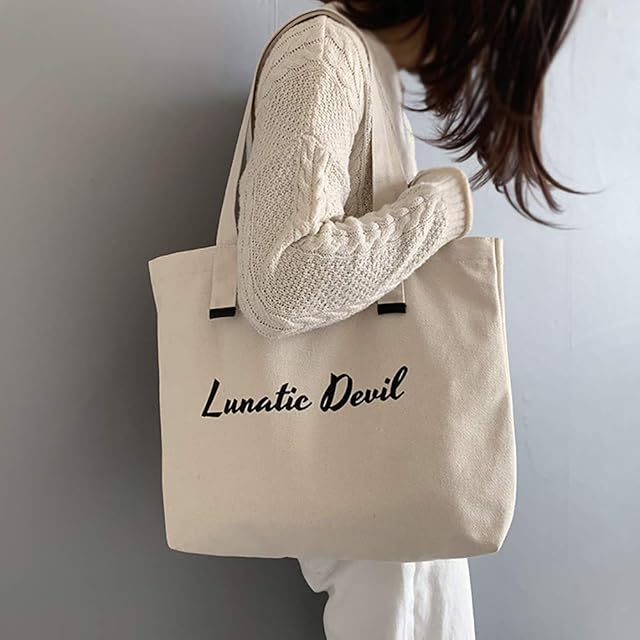 [ザボンチー] かわいいキャンバスバッグ トートバッグ 大容量 肩掛けバッグ 通学 出掛けバッグ ファスナー付き (Lunatic Devil)
