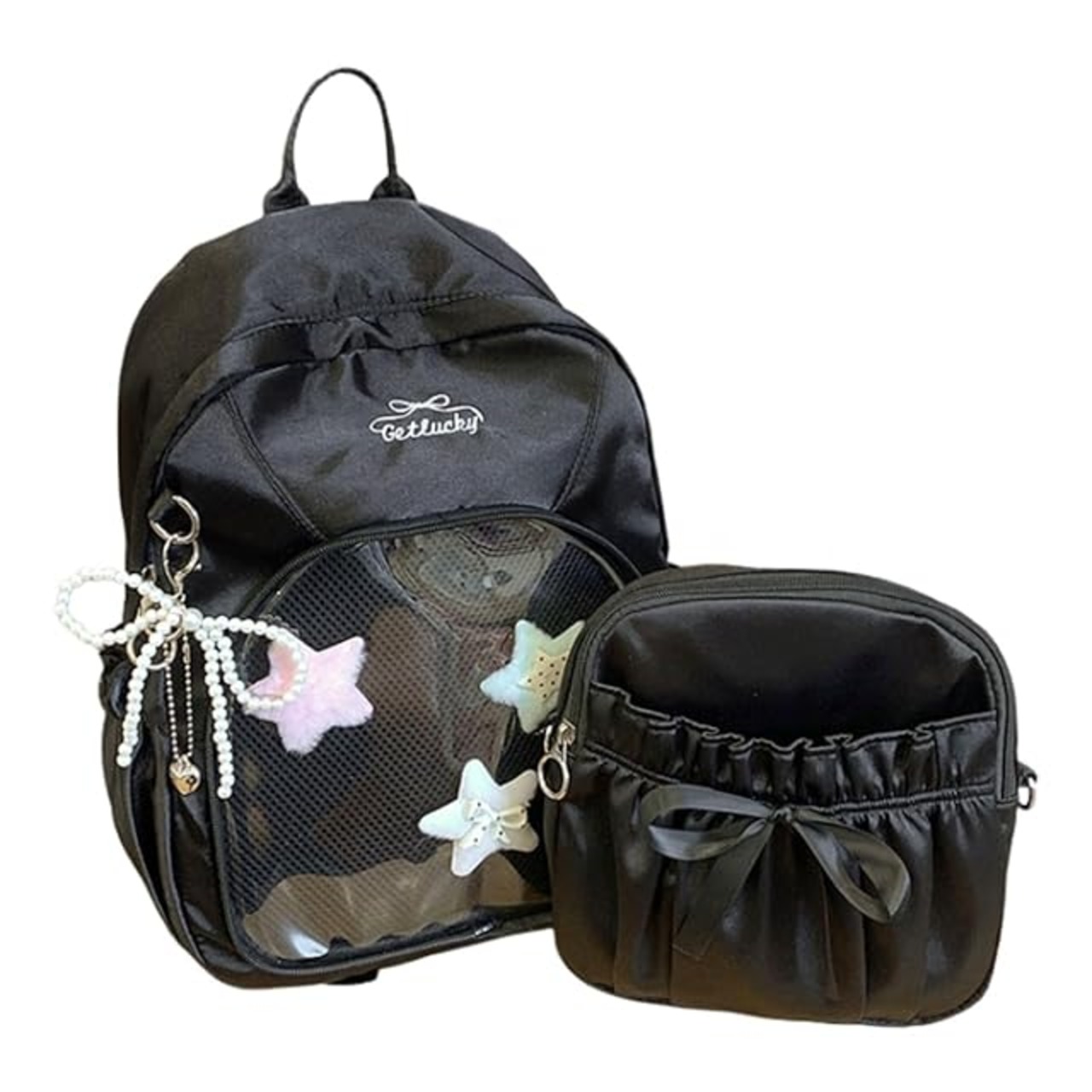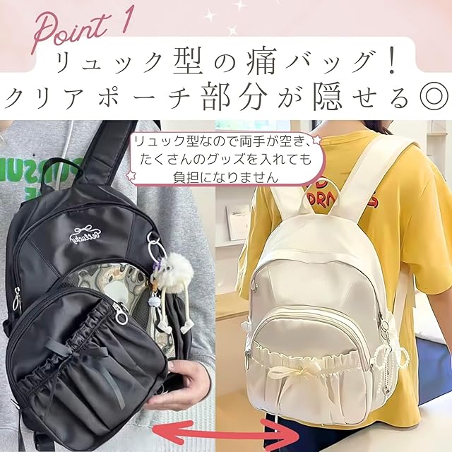 [ハルジオ] 推し活リュック 痛バッグ リュック A4 痛バ 隠せる 推し活バッグ バック ぬいぐるみ ぬい いたばっく 大容量 大きめ ブラック ホワイト 黒 白 オタ活 かわいい おしゃれ 可愛い お洒落 鞄 普段使い イベント 人気 シート (ブラック)