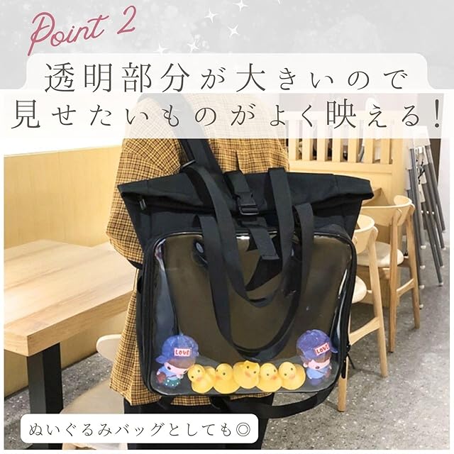 [ハルジオ] 痛バッグ 痛バ リュック 痛バック 痛リュック 推し活リュック 推し活バッグ A4 トート トートバッグ 2WAY 透明 ブラック 推し活 大きめ 大容量 クリア 推し活 オタ活 バッグ 推し ぬい かわいい 人気 シンプル 普段使い イベント