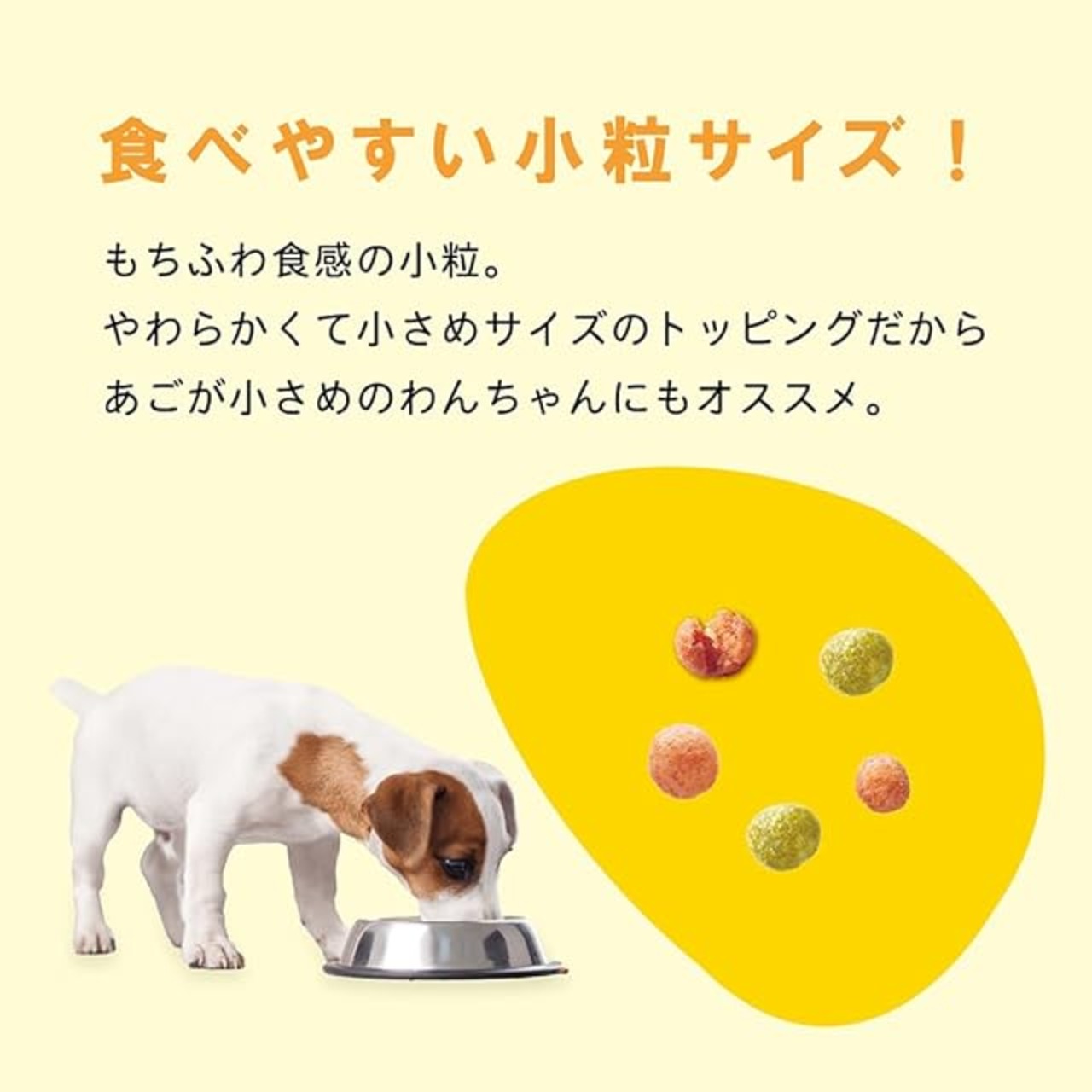 着色料不使用。国産鶏肉を使用したもちふわ粒にささみ粒をトッピング。優れた栄養バランスで免疫力を維持。