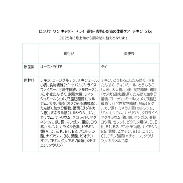 ピュリナ ワン ピュリナワンキャット 避妊・去勢した猫の体重ケア 避妊・去勢後から全ての年齢に チキン 2kg (500gx4袋入)