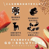 【厳選した食材で、美味しくお悩みを解決】20年以上のペット栄養の専門知識と厳選した安心食材。美味しく健康的にお悩みを解決する最適なレシピ。それがGO!SOLUTIONです。