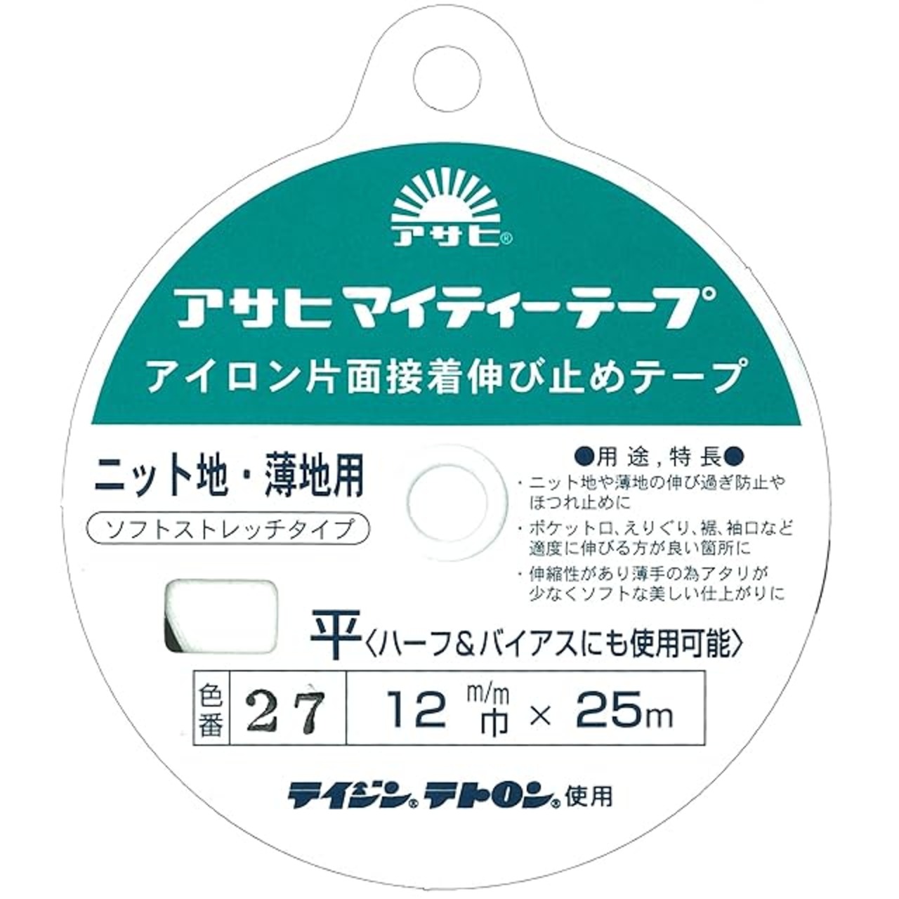 商品名:アサヒ アイロン片面接着テープ マイティーテープ 12mm幅 白 25m巻