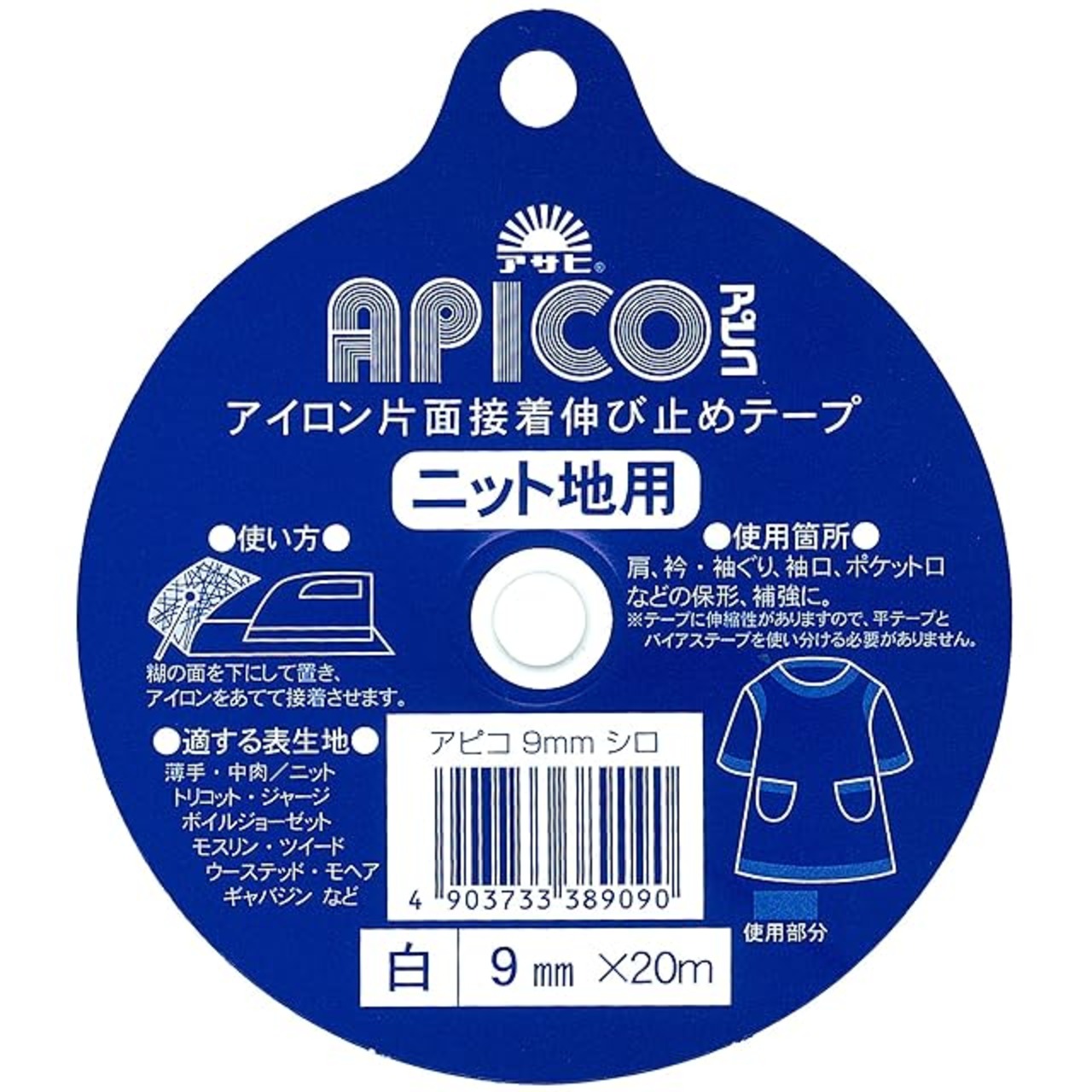 商品名:アサヒ アイロン片面接着テープ アピコテープ 9mm幅 白 20m巻
