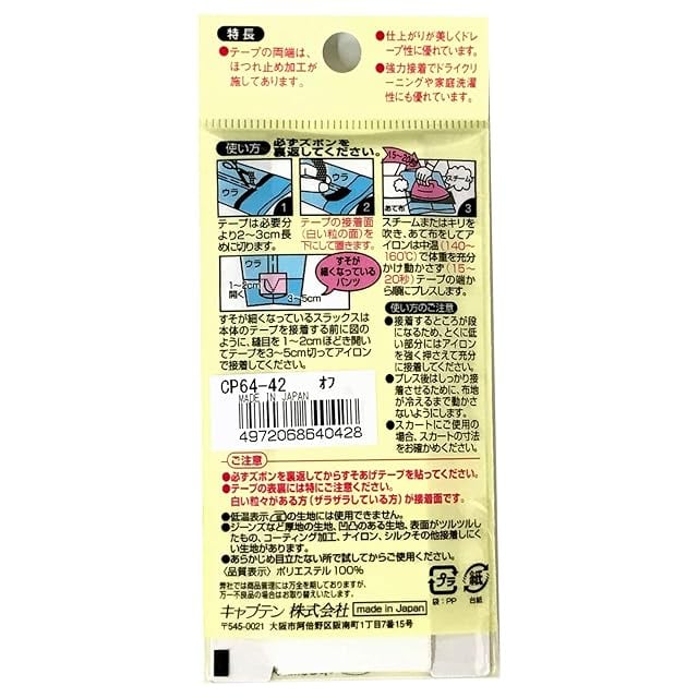 商品名:CAPTAIN88 キャプテン 薄地すそあげテープ 巾30mm×1.5m巻 #42 オフホワイト CP64