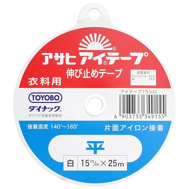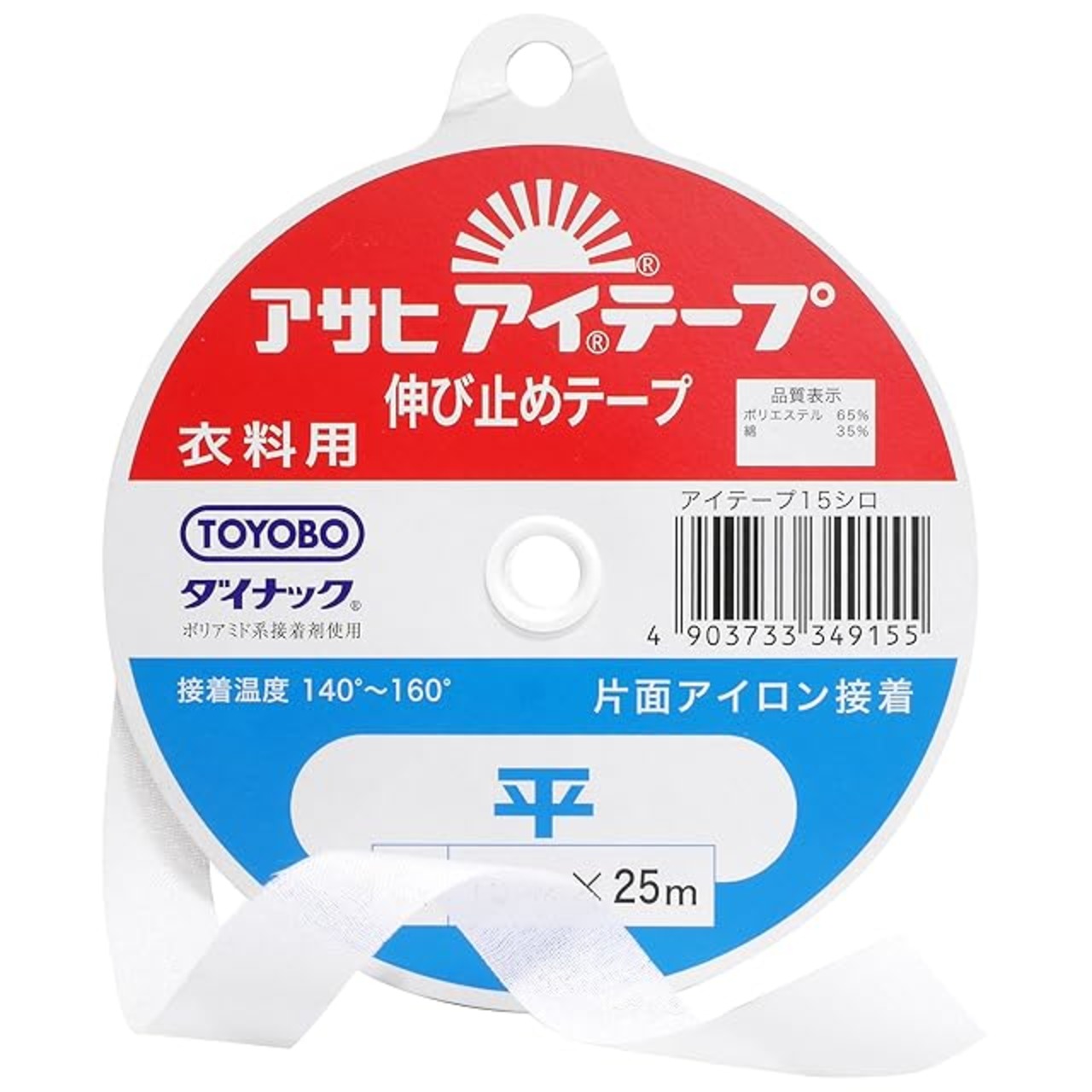 商品名:アサヒ(Asahi) アイテープ 伸び止めテープ 衣料用 片面アイロン接着 平 幅15mm×25m巻 白