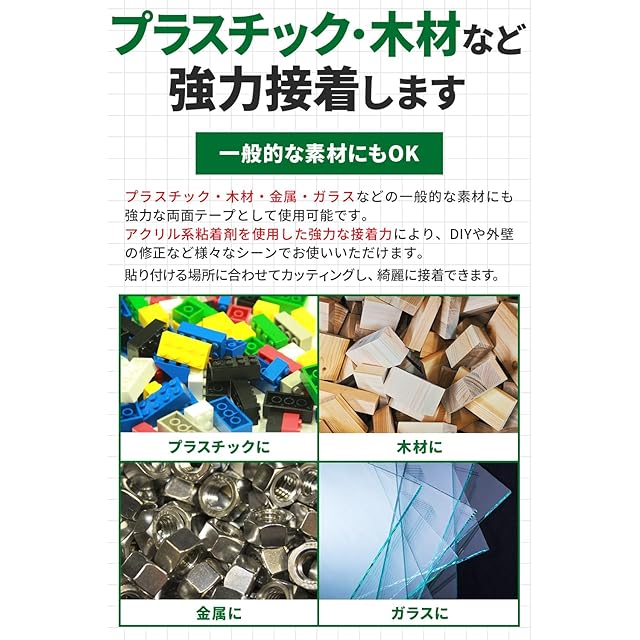 ⭕【 もちろんそれ以外の素材にも 】 もちろん一般的な素材、 プラスチック ・ 木材 ・ 金属 ・ ガラス などの接着も強力にできます。なので吸音材の貼り付けに使って残りは普通に使うなんてこともできます。