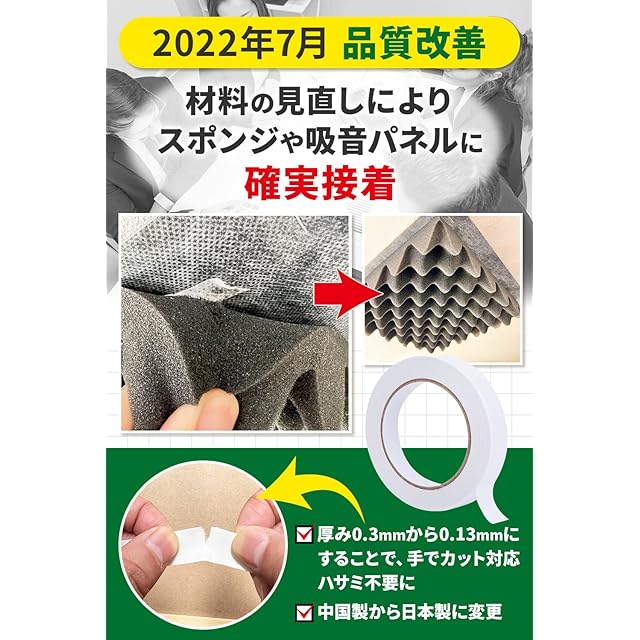商品名:日本製【 接着しにくい素材に特化 】防音ファストラボ® スポンジ用 超強力両面テープ 15mm×20m 吸音材 緩衝材 ウレタン フェルト 布 発泡スチロール の貼り付けに