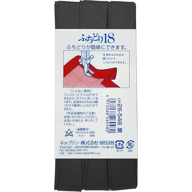 商品名:CAPTAIN88 キャプテン ふちどり 18 バイアステープ 18mm幅×3m巻 #548 黒 CP26