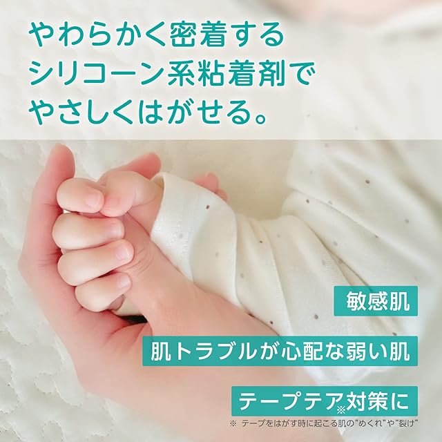 【肌にやさしい】 やわらかく密着する粘着剤「シリコーンゲル」を使った肌にやさしいサージカルテープです。敏感肌・弱った肌に、こどもから高齢者までやさしく剥がせます。