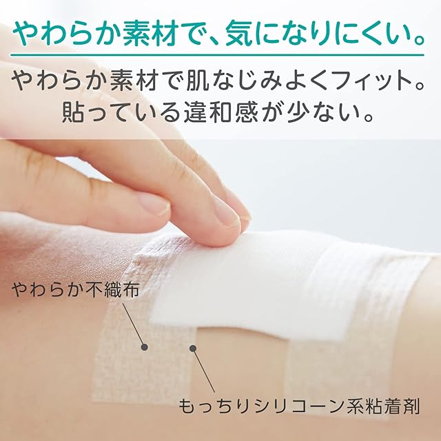 【違和感が少ない材質】 やわらかい不織布素材が肌なじみよくフィットします。貼ったときにゴワつかず違和感が少ないです。