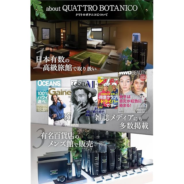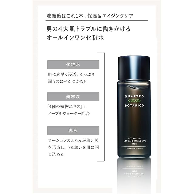 商品タイプ:化粧水 乳液 美容液 洗顔 メンズスキンケア アフターシェーブ 乾燥 オイリー 脂性肌 敏感 ボタニカル 低刺激 保湿 男子化粧品 クワトロボタニコ