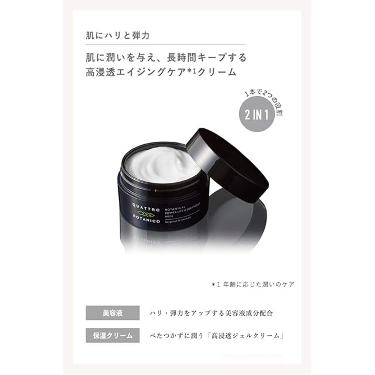 【高機能クリーム】重力に負けない弾力肌、かさつきのない潤った肌、そのふたつをかなえるクリーム。べたつかず、みずみずしい使用感です。