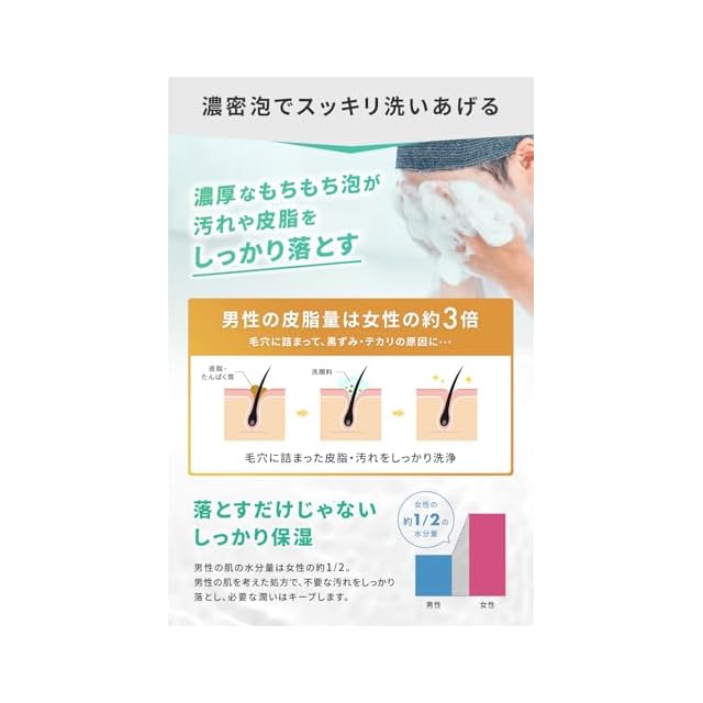 【男の肌悩みにアプローチ】 毛穴 の 黒ずみ 、 ニキビ 、 肌荒れ にしっかりアプローチ! 余分な 皮脂 をしっかりと落とせるので、顔の テカリ 対策にも! 濃厚な泡で スキンケア できる メンズ 洗顔