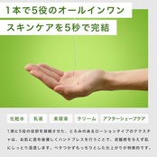 【1本に5役を集約したオールインワンスキンケアアイテム】この1本に化粧水・美容液・乳液・パック・アフターシェービングケアを集約しました。