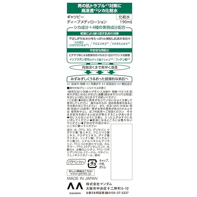 商品名:GATSBY(ギャツビー) ディープメディローション [ 日本製 メンズ シカ 化粧水 ] [ 肌あれ 保湿 ]