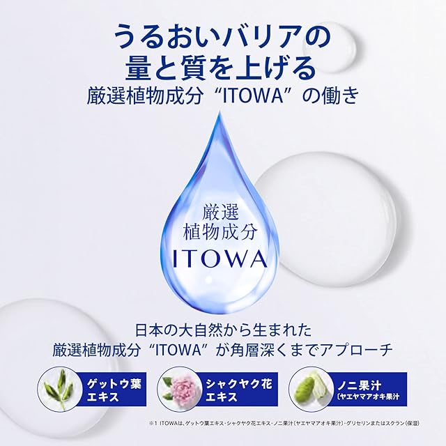 雪肌精 クリアウェルネス独自の厳選植物成分、イトワを配合。日本の大自然から生まれた植物由来成分を贅沢につめこみ、うるおいバリアの量と質を上げることで、乾燥による肌あれを防ぎ、トラブルに負けない健やかな肌へ導きます。