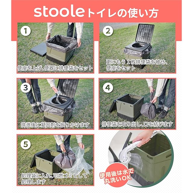 スツーレ® 【防災グッズ大賞受賞】 簡易トイレ ポータブルトイレ 防災からアウトドアまで 携帯トイレ 介護 耐荷重100㎏ (e.グリーン/Lサイズ)