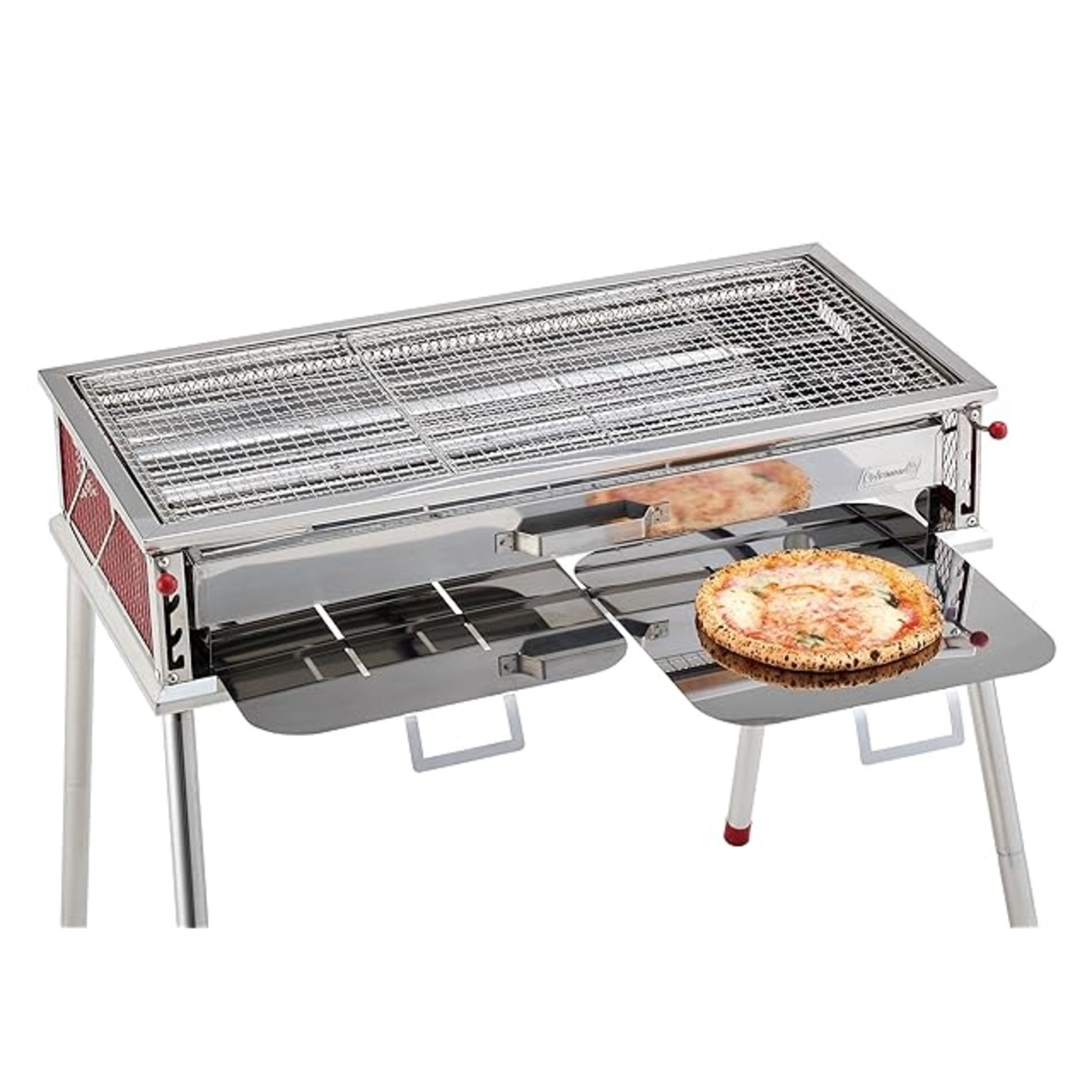 【オーブン機能】炭受け(ロストル)の下に簡易オーブンが付いて、冷凍ピザやトーストなどの料理も同時に楽しめます。