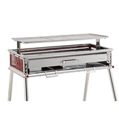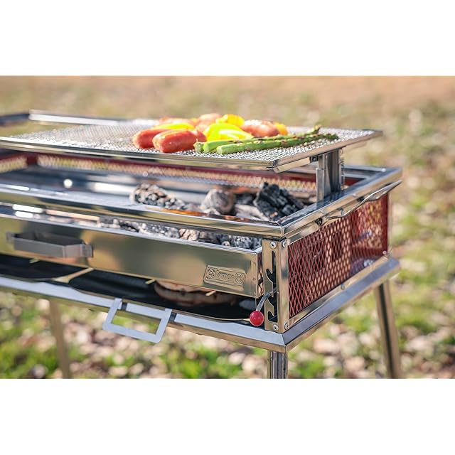 【使用シーン】アウトドア・キャンプ・BBQで活躍する、焼網の高さで火力の調節が可能な機能性に優れたオールステンレス大型グリルです。