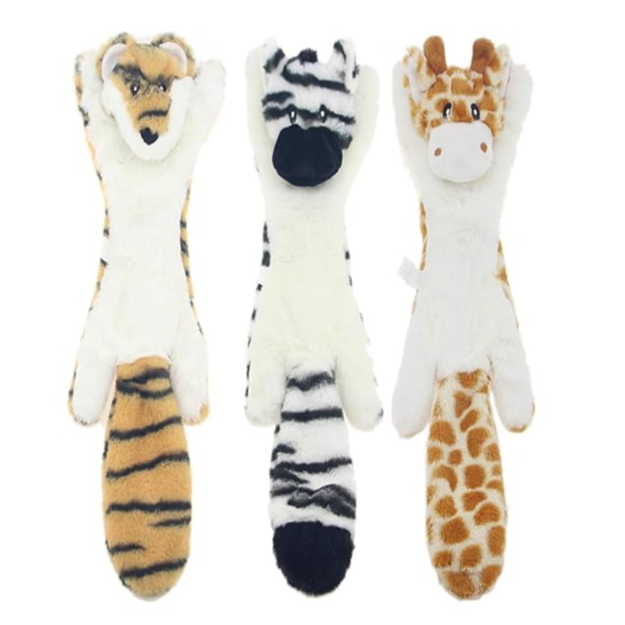 動物の頭と尾の中に、笛が入っているので、ワンちゃんが噛むと、「ピュ~ピュ~」と音が鳴ります。犬の注意力を集中しながらもっと興味を惹きつけます。