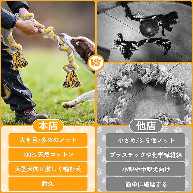 いつも安全を第一に: 100%天然の洗えるコットンで作られたロープおもちゃは、噛んで遊んでも安全です。我々はいつもペットの健康を第一位にしています。