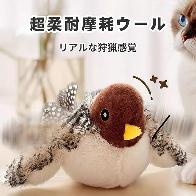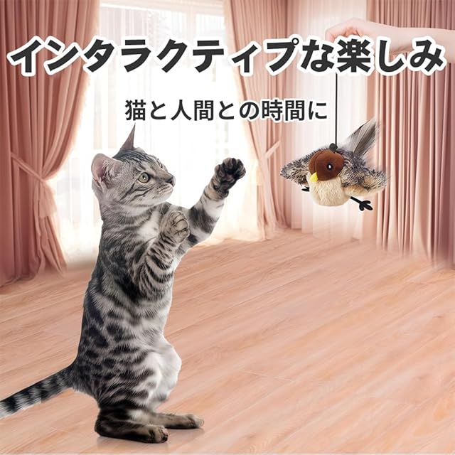 猫 おもちゃ 電動 タッチ起動 羽ばたく翼 鳥の鳴き声をシミュレートする 充電式