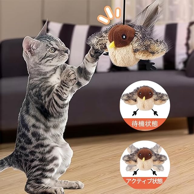 商品名:猫 おもちゃ 電動 タッチ起動 羽ばたく翼 鳥の鳴き声をシミュレートする 充電式