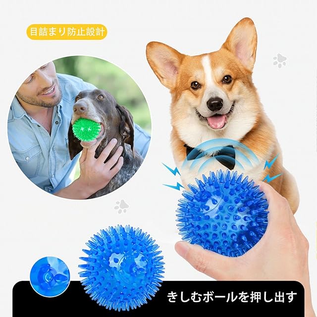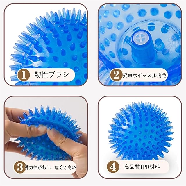 【音が出るボール】犬用ボールにホイッスルが設計され、噛むと面白い音ができ、ワンちゃんの好奇心を刺激し、遊びの楽しさを増します。ボールピンはクッションがあり、押し潰されにくく、窒息の危険もありません,犬に最も安全なペットおもちゃを提供します。