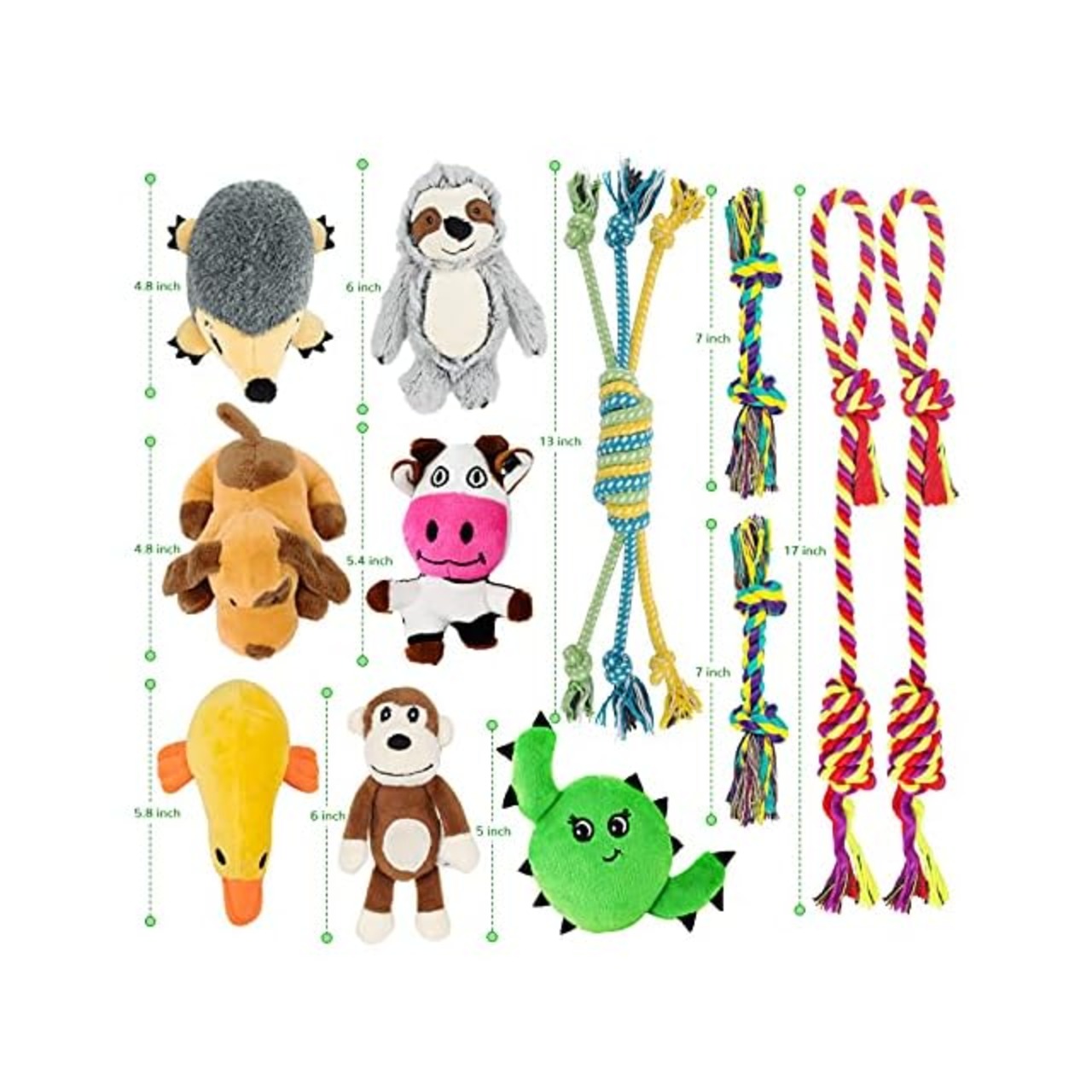 12個入り犬のおもちゃで、あらゆるシーンに最適:一式で様々な楽しみをもたらします。 ハリネズミの7個入り、ハリネズド、モンキー、フェアリー、犬、アヒル、牛、ハリネズミ、5個入りの天然コットンハーネスです。 ワンちゃんの日常生活の異なる要求を満たし、モグやトレーニング、インタラクティブゲームに最適です。 レースを参考にしても、あなたの犬が楽しい、リラックスした選択を提供します。