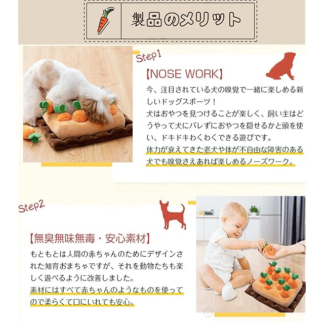 商品名:にんじん畑 犬 おもちゃ にんじん収穫隊 YCYHHHWノーズワークマット 犬 知育玩具 ペット用品 犬用品 犬のおもちゃ 噛む 運動不足 ストレス解消 家の破壊防止対策 (人参8個) (にんじん畑 2代)