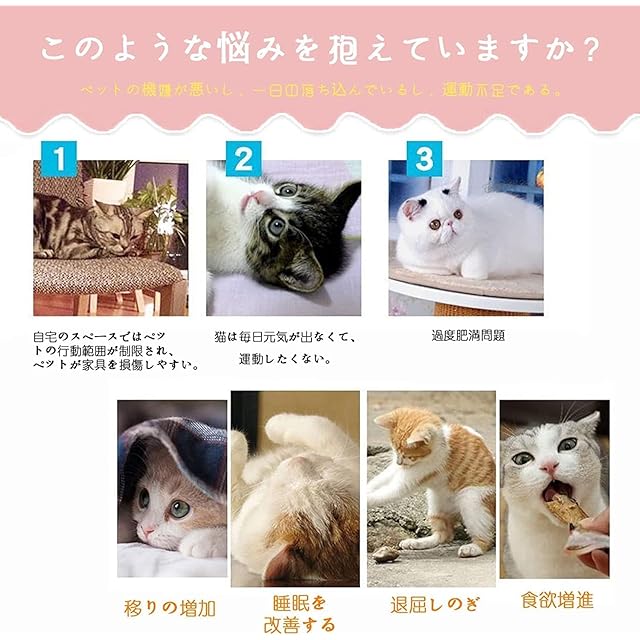室内飼い猫の運動不足解消、ストレス解消に役立ちます。猫の健康を維持することにはいい効果があります。
