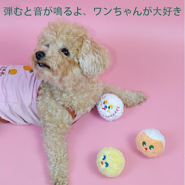 商品名:犬 おもちゃ セット ペットのふわふわボール、押すと跳ねて音が出る、一緒に遊ぶととっても楽しい バイトミー 犬 おもちゃ