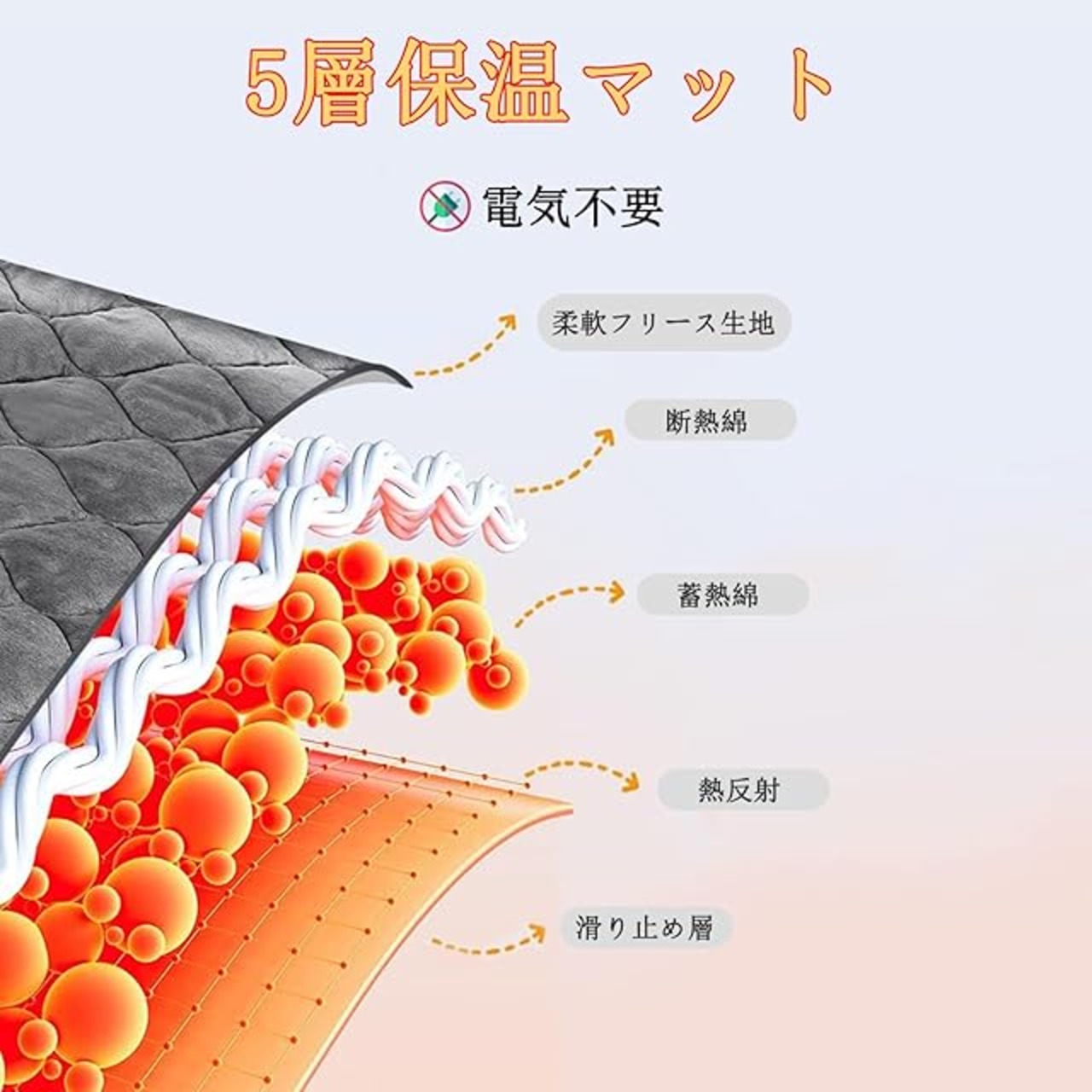 【体温で蓄熱】熱源は「ペット自身の体温」のみ、あたたかく温まる。熱反射アルミ入りので、ペットちゃんの体温を蓄熱しジワジワ温熱効果を保ちことができます。